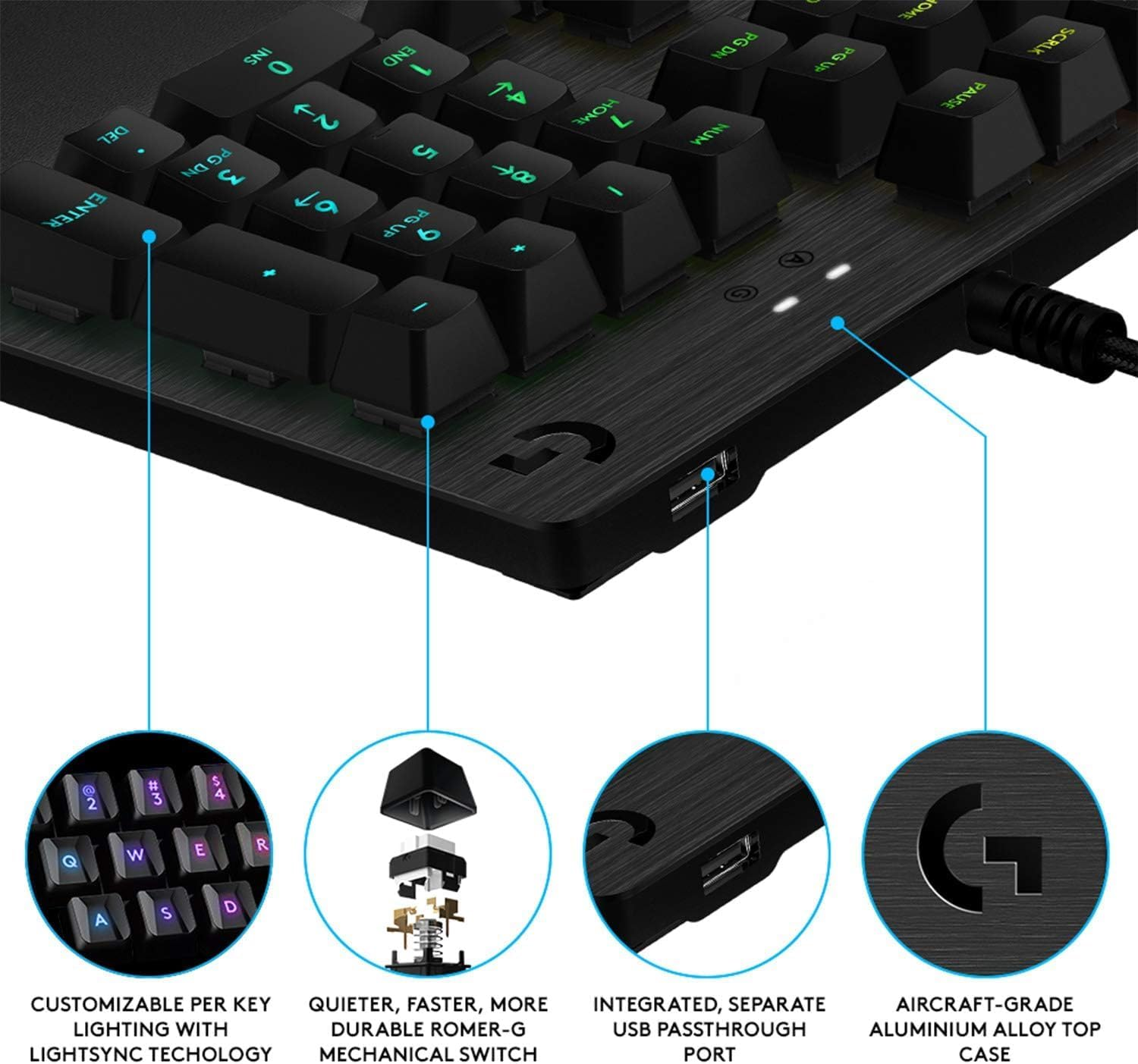 Clavier mécanique robuste avec rétroéclairage RGB, parfait pour gamers et utilisateurs professionnels qui tapent beaucoup.